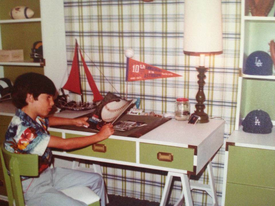 About the picture above: My room in Huntington Beach in 1975. I was ten years old and already a sports fanatic. Notice the Rams (in L.A. back then) souvenirs on the left and the Los Angeles Dodgers souvenirs on the right. There is a 10th Anniversary Houston “Astrodome” pennant on my desk, and I’m reading a baseball world series magazine from 1975. I still love the Dodgers; wear Hawaiian shirts; but prefer the San Diego Chargers to those “traders” – the St. Louis Rams.